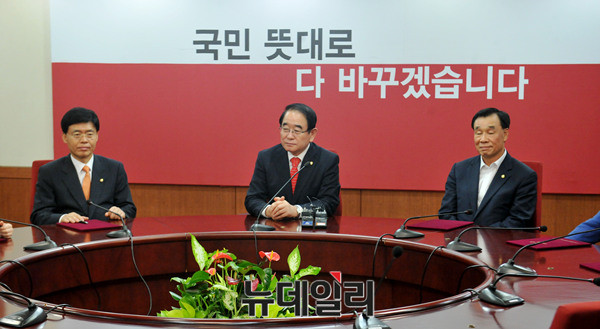 새누리당 박명재 의원이 1일 오후 서울 여의도 당사에서 열린 전당대회 준비위원회 첫 회의를 주재하고 있다.