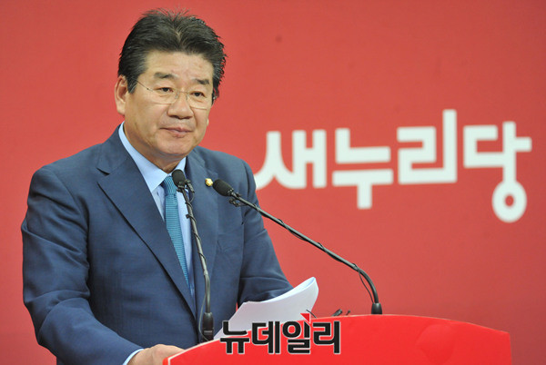 새누리당 강석호 의원이 3일 오후 서울 여의도 당사에서 기자회견을 갖고 최고위원 출마 기자회견을 갖고 있다.