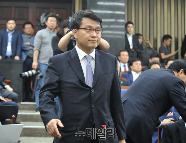 새누리당 윤상현 의원이 6일 오후 국회에서 열린 의원총회에 참석해 복당과 관련해 인사말을 하고 있다.
