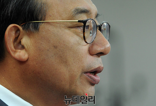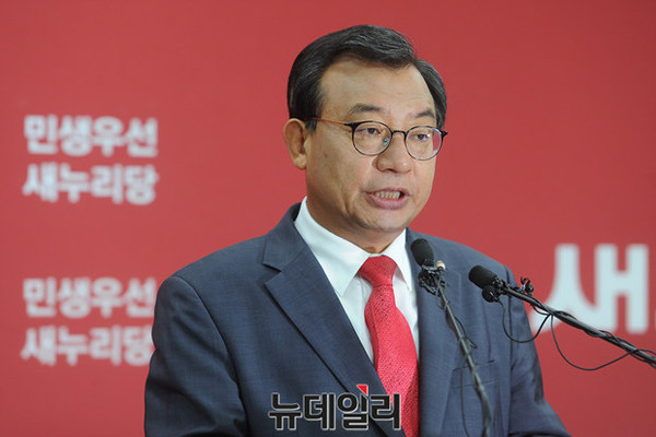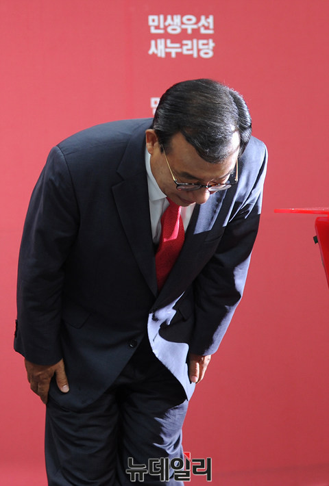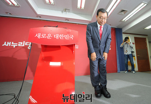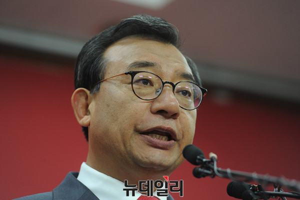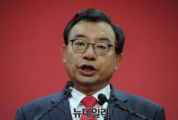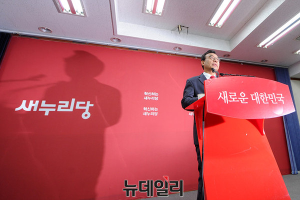 새누리당 이정현 의원이 7일 서울 여의도 새누리당 당사에서 전당대회 당 대표 출마를 공식 선언하고 있다.