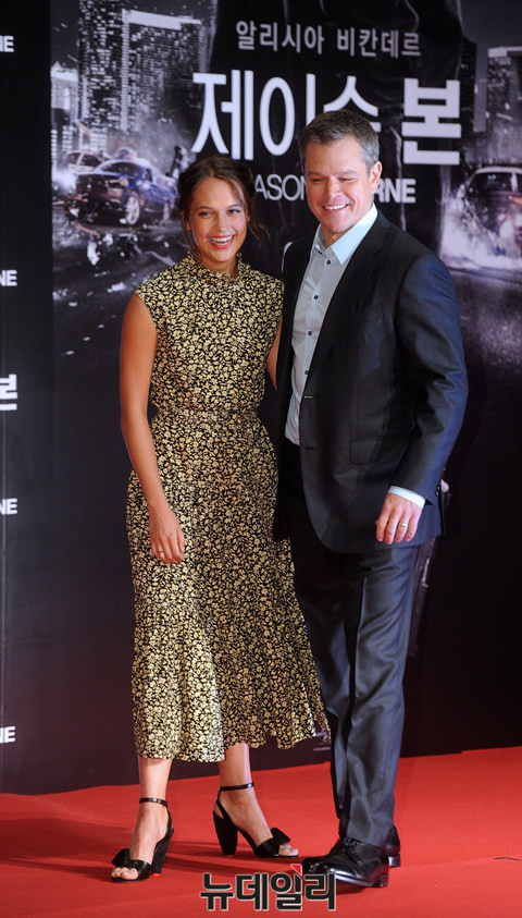 맷데이먼과 알리시아 비칸데르가 8일 오전 서울 광화문 포시즌스 호텔에서 열린 영화 ‘제이슨 본’ 내한 기자회견에 참석해 포토타임을 갖고 있다.이날 기자회견에는 맷데이먼과 알리시아 비칸데르가 참석해 포토타임과 간담회를 진행했다,'제이슨 본'은 가장 완벽한 무기였던 제이슨 본이 모든 자취를 숨기고 사라졌다가 자신의 기억 외에 과거를 둘러싼 또 다른 숨겨진 음모와 마주치게 된 뒤 다시 돌아오면서 펼쳐지는 액션 블록버스다. 오는 27일 개봉 예정이다.