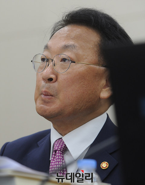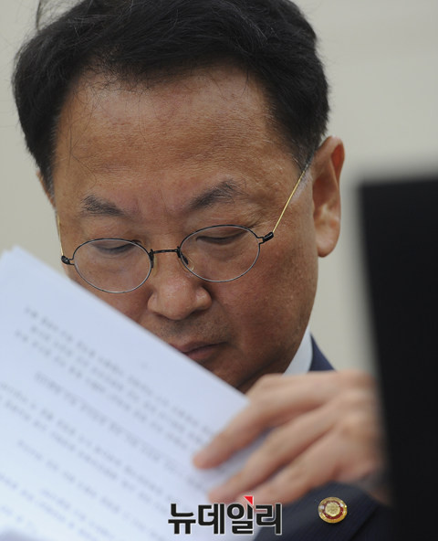 유일호 경제부총리 겸 기획재정부 장관이 11일 오전 서울 여의도 국회에서 열린 기획재정위원회 전체회의에 출석해 의원들의 질의 답변 중 물을 마시고 있다.