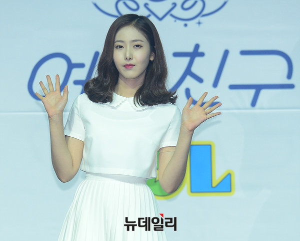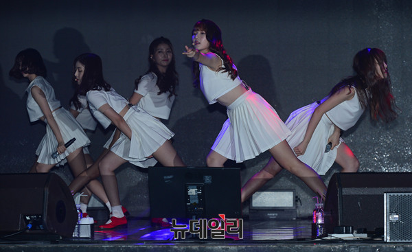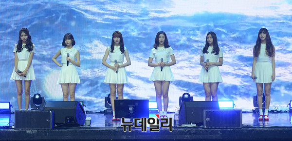 걸그룹 여자친구(소원, 예린, 은하, 유주, 신비, 엄지)가 11일 오후 서울 광진구 예스24라이브홀에서 첫 정규앨범 'LOL'을 알리는 쇼케이스를 갖고 포토타임을 갖고 있다. 이날 사회는 김일중 아나운서가 맡았다.