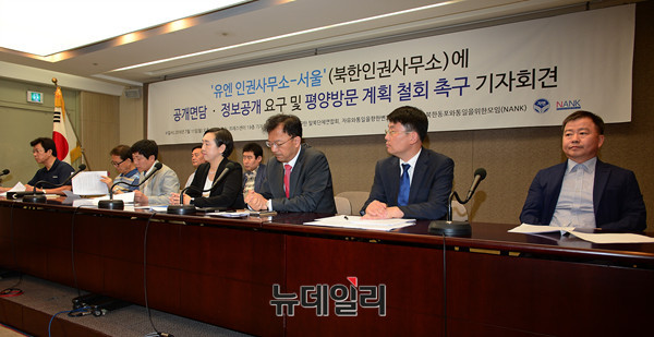 자유와통일을향한변호사연대(이하 자변), 민변규탄탈북단체연합회, 북한동포와통일을위한모임(북통모) 등이 11일 오후 한국프레스센터에서 기자회견을 열고, "유엔인권최고대표사무소(OHCHR)와 유엔인권사무소서울은 탈북종업원 가족 조사를 위한 평양 방문계획을 즉각 철회 하라"고 주장했다.
