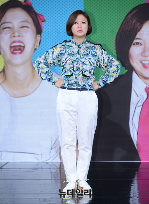 MBC에브리원 토크쇼 '비디오스타(연출 이유정 김예린)' 제작보고회가 12일 오전 상암MBC 골든마우스홀에서 진행됐다. 개그우먼 김숙이 포토타임을 갖고 있다.