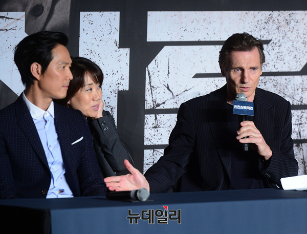 영화 '인천상륙작전(Operation Chromite, 감독 이재한)'에서 맥아더 역을 맡은 배우 리암니슨(Liam Neeson)이 13일 오전 서울 콘래드서울호텔에서 열린 제작보고회에 참석해 발언하고 있다.