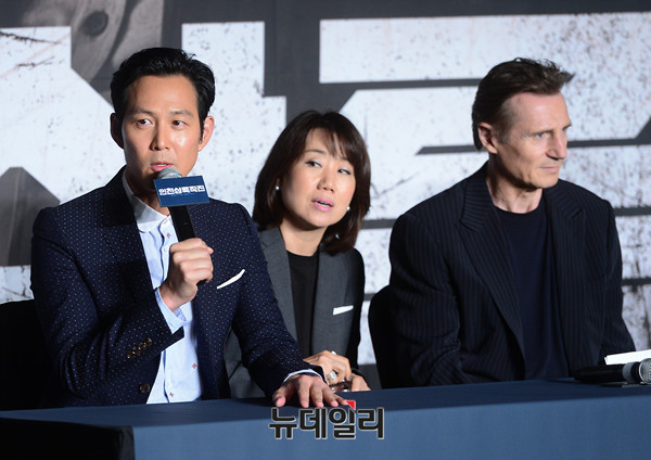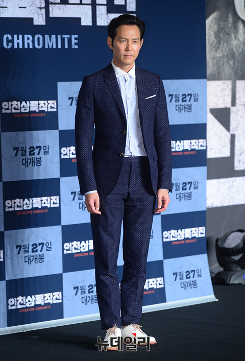 영화 '인천상륙작전(Operation Chromite, 감독 이재한)'에서 림계진 역을 맡은 배우 이정재가 13일 오전 서울 콘래드서울호텔에서 열린 제작보고회에 참석해 발언하고 있다.