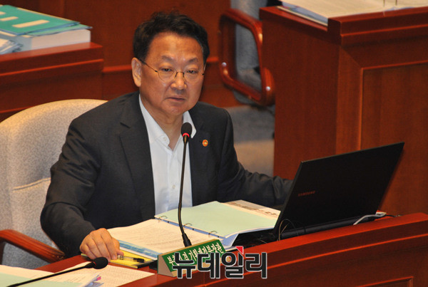 유일호 경제부총리 겸 기획재정부 장관이 14일 오전 국회에서 열린 예산결산특별위원회 전체회의에 참석해 의원들의 질문에 답하고 있다.