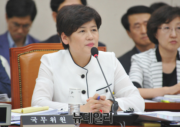강은희 여성가족부 장관이 15일 오후 국회 여성가족위원회실에서 열린 전체회의에서 의원들의 질의에 답하고 있다.
