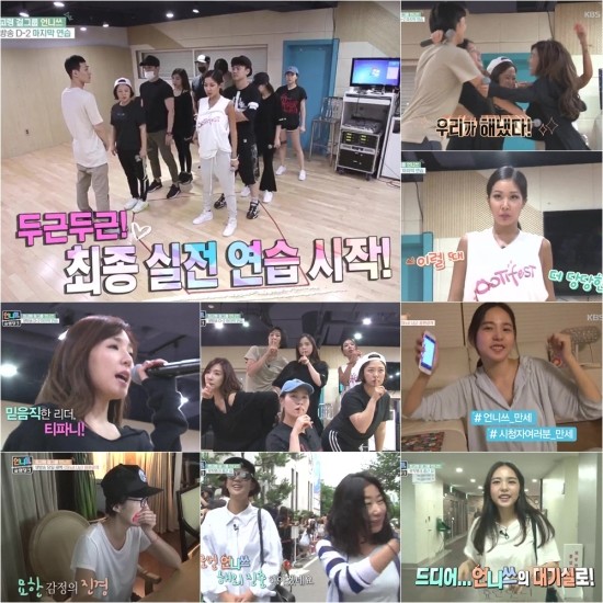 15일 KBS 2TV '언니들의 슬램덩크'(연출 박인석) 15회에서는 '뮤직뱅크' 방송을 앞두고 마지막 안간힘을 내며 노력하는 언니쓰의 모습이 그려졌다. 노력과 열정으로 꿈에 다다른 언니쓰는 감동, 재미, 웃음 등 모든 것을 올킬했다.
