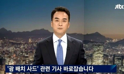 논란이 커지자 JTBC는 17일 뉴스룸 방송에서 "지난 13일 미군 기관지 '성조지' 기사 일부를 발췌, 번역하는 과정에서 오역이 생겨 이를 바로잡는다"며 "시청자 여러분께 일부 오해를 불러 일으킨 점을 사과드리고 향후 보도에 더욱 신중을 기할 것을 약속드린다"고 밝혔다.[사진 = JTBC 방송 화면 캡처]