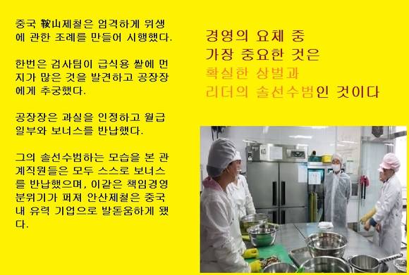 혼자 할 수 있는 범위는 한계가 있다. 성장하는 기업을 들여다보면 CEO와 간부들이 직원들로 하여금 성과를 낼 수 있는 환경이 형성돼 있다. 반면 쇠퇴하는 기업은 일하는 직원, 노는 직원 똑같이 대우받아 ‘다 같이 적당히 하자’는 분위기가 팽배하다.
