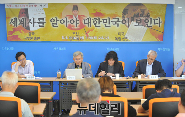 자유경제원이 21일 자유경제원 리버티홀에서 '세계사를 알아야 대한민국이 보인다'를 주제로 토론회를 갖고 있다.