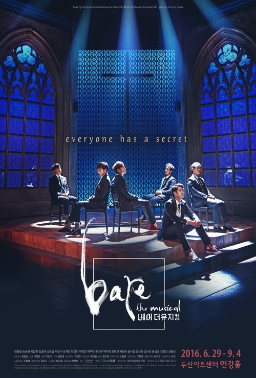'베어 더 뮤지컬'의 메인 포스터는 보수적인 카톨릭계 고등학교를 상징하는 무대 중앙의 십자가를 중심으로 양쪽의 커다란 창문이 한눈에 들어온다.