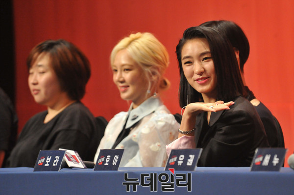 시스타 보라가 22일 오후 63스퀘어에서 열린 Mnet '힛 더 스테이지(HIT THE STAGE)' 제작발표회에 참석해 발언을 하고 있다.