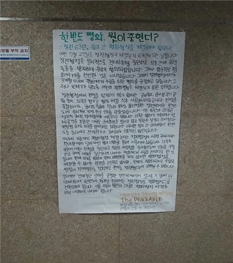 ↑ 중앙대학교 법학관 벽보에 붙은 대자보.