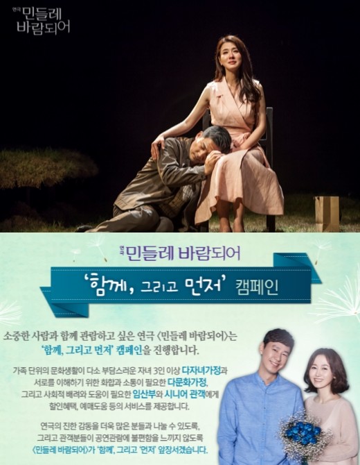 연극 '민들레 바람되어'가 '함께, 그리고 먼저' 캠페인을 펼친다.