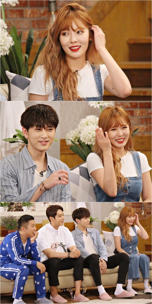 '패왕색' 현아가 망언 종결자에 등극했다.28일 방송될 KBS 2TV '해피투게더3'는 '쇼윈도 친구' 특집으로 연예계 최강 '흥신끼왕' 현아-용준형-송원근-이수민-박승건이 출연한다.현아는 '패왕색'(애니메이션에서 유래된 말로 좌중을 압도하는 섹시함을 의미하는 신조어)이라는 닉네임을 얻을 정도로 무대 위에서 강렬한 퍼포먼스와 뇌쇄적인 매력을 뽐내는 최고의 섹시 디바.이날 현아는 '패왕색'이라는 별명을 무색케 하는 망언을 쏟아냈다. 바로 "나는 흥도 끼도 없다"고 주장한 것. 이에 현장 모든 이들이 원성을 터뜨리자 "내가 말하면 깨는 스타"이라며 과도하게 털털한 입담을 뽐내 웃음을 자아냈다.현아의 절친 비스트의 용준형 역시 엉뚱한 예능감으로 이목을 끌었다. 용준형은 "데뷔 8년차인데 엄마가 TV 좀 나오라고 해서 '해투'에 나왔다"며 '짐승돌'이라는 야성적인 닉네임에 걸맞지 않는 수줍음으로 현장을 웃음바다로 만들었다.이 외에도 현아-용준형-송원근-이수민-박승건의 화끈한 입담뿐만 아니라 최고의 흥부자를 가리는 '전국 흥신끼왕자랑'이 펼쳐지는 등 화끈한 파티가 펼쳐졌다는 후문이다.KBS2 목요 예능 '해피투게더3'는 28일 오후 11시 10분 방송된다.['해피투게더' 현아, 사진=KBS]