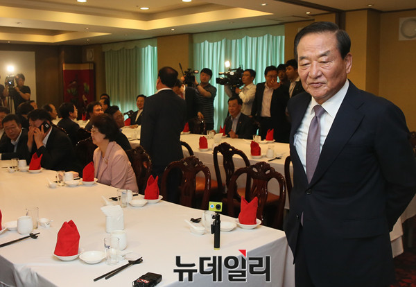 새누리당 서청원 의원이 27일 오후 서울 여의도의 한 중식당에서 의원 만찬 회동을 주최하고 있다.