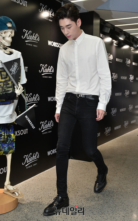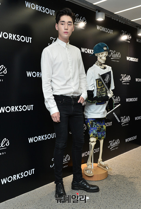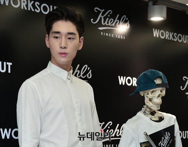 모델 김기범이 28일 오후 서울 강남구 웍스아웃 압구정점에서 열린 키엘(Kiehl's) 남성 안티에이징 라인 '에이지디펜더' 출시 행사에 참석해 포토타임을 갖고 있다.