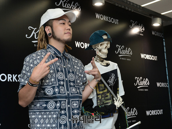 래퍼 지투와 레디가 28일 오후 서울 강남구 웍스아웃 압구정점에서 열린 키엘(Kiehl's) 남성 안티에이징 라인 '에이지디펜더' 출시 행사에 참석해 포토타임을 갖고 있다.