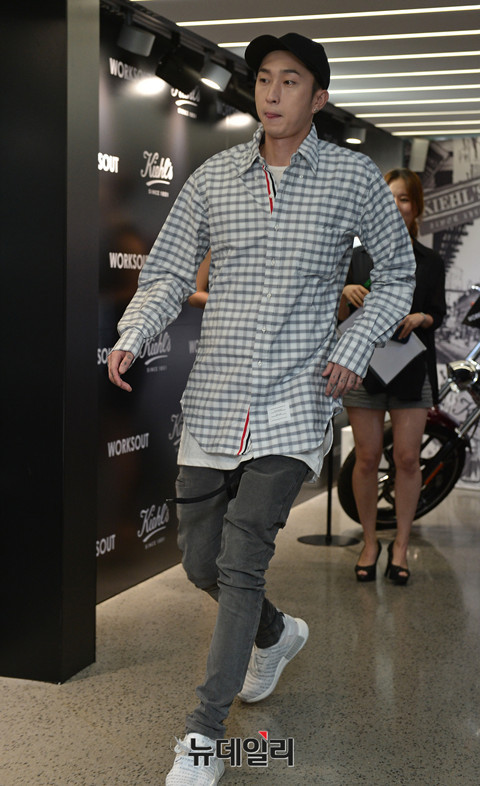 래퍼 슬리피가 28일 오후 서울 강남구 웍스아웃 압구정점에서 열린 키엘(Kiehl's) 남성 안티에이징 라인 '에이지디펜더' 출시 행사에 참석해 포토타임을 갖고 있다.