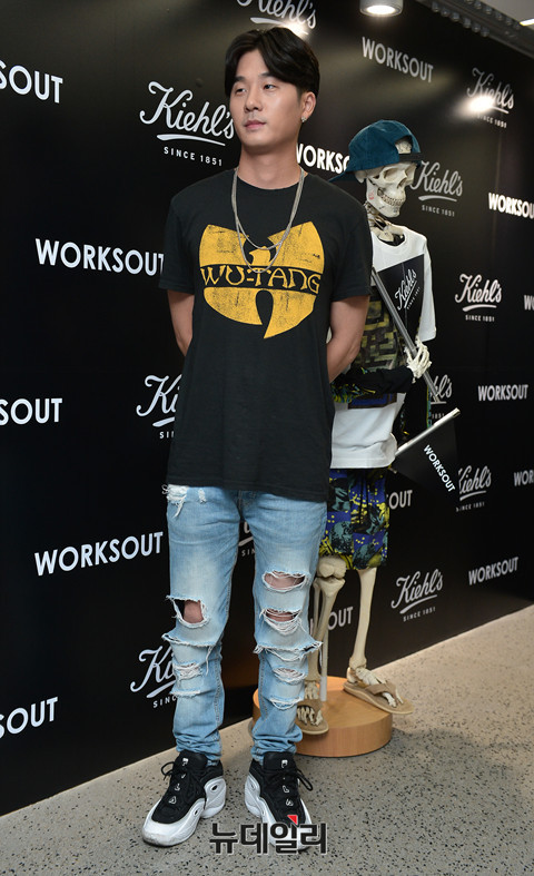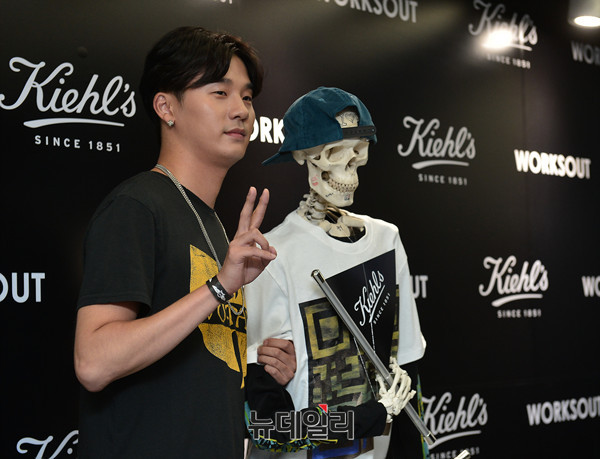 래퍼 베이식이 28일 오후 서울 강남구 웍스아웃 압구정점에서 열린 키엘(Kiehl's) 남성 안티에이징 라인 '에이지디펜더' 출시 행사에 참석해 포토타임을 갖고 있다.
