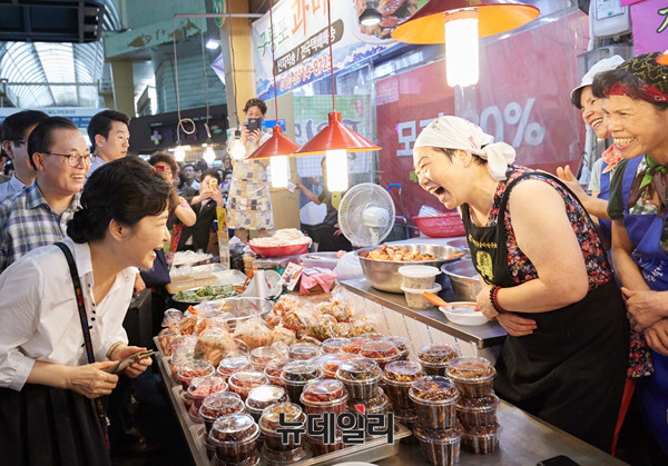 지난 25일부터 휴가 중인 박근혜 대통령이 28일 울산지역을 깜짝 방문했다. 울산 십리대숲과 대왕암공원을 방문한 박 대통령은 신정시장을 찾아 상인들과 웃으며 인사를 나누고 있다. (사진=청와대)