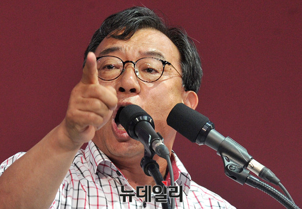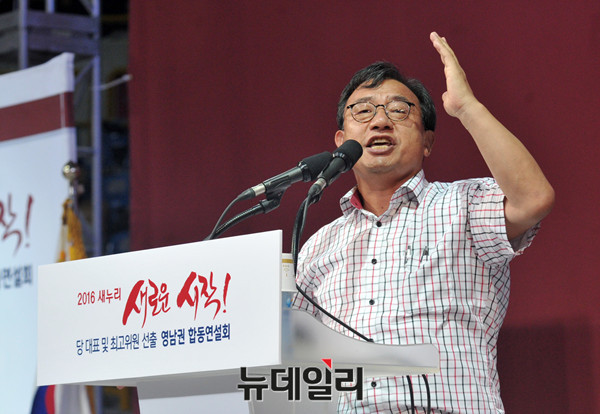 8.9 전당대회 이정현 새누리당 당 대표 후보가 31일 오후 경남 창원시 창원실내체육관에서 열린 당 대표 및 최고위원 선출 영남권 합동연설회에서 정견발표를 하고 있다.