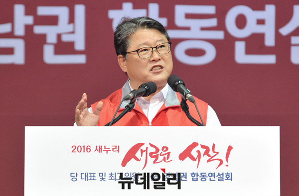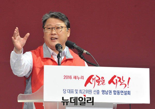 8.9 전당대회 조원진 새누리당 최고위원 후보가 31일 오후 경남 창원시 창원실내체육관에서 열린 당 대표 및 최고위원 선출 영남권 합동연설회에서 정견발표를 하고 있다.