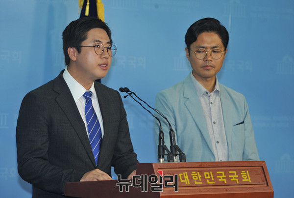 전 더불어민주당 청년혁위 이동학 위원이 1일 오전 국회 정론관에서 기자회견을 갖고 청년부문 최고위원 출마 기자회견을 갖고 있다.