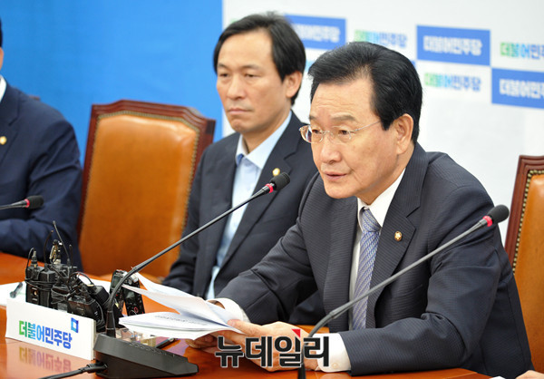 더불어민주당 변재일 정책위의장이 4일 오전 국회 원내대표실에서 열린 정책조정회의에서 모두발언 하고 있다.