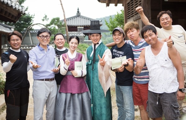 이어 '옥중화'의 수장 이병훈 감독과 김성용 조감독이 진세연-고수의 양 옆에 서서 손을 쭉 뻗어 보이고 있는데, 진세연-고수 커플의 '승리의 브이'를 카메라에 전달하는 듯한 포즈에서 위트가 묻어난다. 또, 다른 스태프들은 '따봉'부터 주먹을 불끈 쥔 '원조 파이팅'에 이르기까지 다채로운 응원 포즈들로 활기찬 에너지를 견인하고 있다.