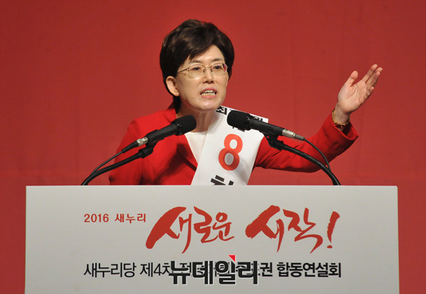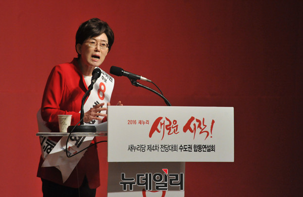 8.9 전당대회 최연혜 새누리당 최고위원 후보가 31일 오후 서울 서초구 양재동 더케이호텔서울에서 열린 당 대표 및 최고위원 선출 수도권 합동연설회에서 정견발표를 하고 있다.