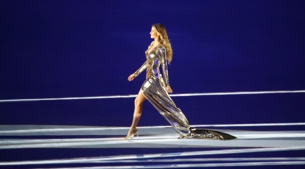 브라질이 낳은 세계 최고의 슈퍼모델 지젤 번천이 리우올림픽 개막식에서 눈부신 자태를 뽐냈다.지젤 번천은 6일(한국시간) 브라질 리우데자네이루 마라카낭 주경기장에서 열린 '2016 리우올림픽' 개막 축하공연에 등장해 화려한 캣워크를 선보였다.이날 지젤번천은 축하공연 중반쯤 무대 한 가운데에 홀로 나타나 브라질을 상징하는 보사노바 대표곡 '이파네마에서 온 소녀(The Girl from Ipanema)'에 맞춰 섹시한 워킹으로 무대를 가로 질렀다.그는 금발을 늘어뜨린 채 절개 라인이 돋보이는 은색 롱드레스를 입고 당당하게 걸으며 톱모델의 위엄을 과시했다. 특히, 걸을 때마다 드러나는 쭉 뻗은 다리라인과 건강미 넘치는 몸매가 눈길을 사로잡았다.
