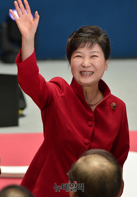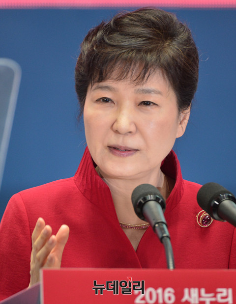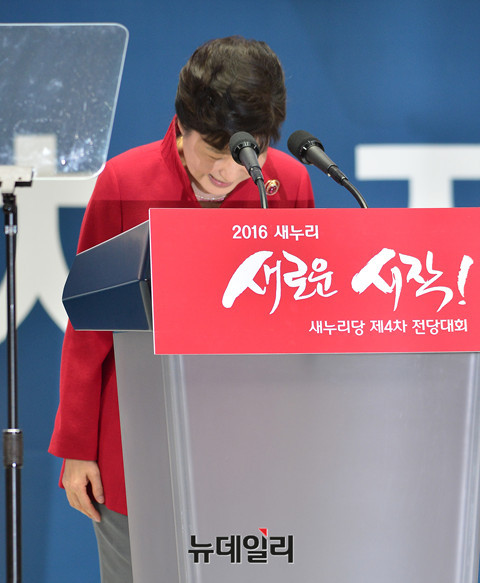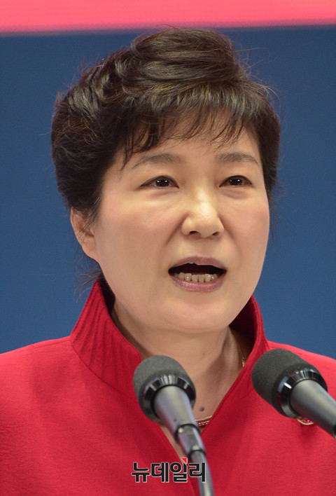 박근혜 대통령이 8일 오후 잠실실내체육관에서 진행된 '새누리당 제4차 전당대회'에 참석해 축사하고 있다.