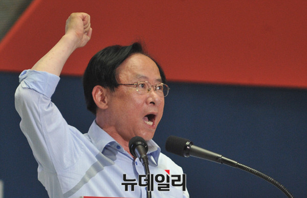 새누리당 이정현 당대표 후보가 9일 오후 서울 잠실실내체육관에서 열린 당대표 및 최고위원 선출 제4차 전당대회에서 정견발표를 하고 있다.이번 전당대회는 지난 7일 진행된 선거인단 투표와 국민여론 조사결과, 전당대회 현장에서 진행되는 대의원 투표결과를 합산해 새누리당 새지도부(당대표, 최고위원5명)을 선출한다. 투표결과는 오후 7시쯤 나올 예정이다.당대표 후보는 이정현, 이주영, 주호영, 한선교 의원이 최고위원 후보는 이장우, 정용기, 조원진, 정문헌, 함진규, 이은재, 최연혜 의원이 청년최고위원후보는 유창수, 이부형 의원이 각각 이름을 올렸다.