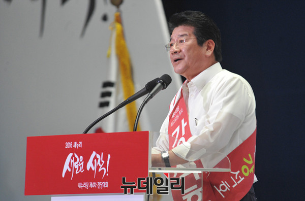새누리당 강석호 최고위원 후보가 9일 오후 서울 잠실실내체육관에서 열린 당대표 및 최고위원 선출 제4차 전당대회에서 정견발표를 하고 있다.이번 전당대회는 지난 7일 진행된 선거인단 투표와 국민여론 조사결과, 전당대회 현장에서 진행되는 대의원 투표결과를 합산해 새누리당 새지도부(당대표, 최고위원5명)을 선출한다. 투표결과는 오후 7시쯤 나올 예정이다.당대표 후보는 이정현, 이주영, 주호영, 한선교 의원이 최고위원 후보는 이장우, 정용기, 조원진, 정문헌, 함진규, 이은재, 최연혜 의원이 청년최고위원후보는 유창수, 이부형 의원이 각각 이름을 올렸다.