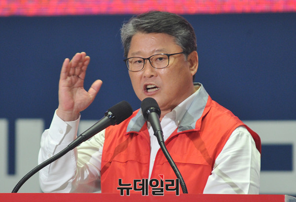 새누리당 조원진 최고위원 후보가 9일 오후 서울 잠실실내체육관에서 열린 당대표 및 최고위원 선출 제4차 전당대회에서 정견발표를 하고 있다.이번 전당대회는 지난 7일 진행된 선거인단 투표와 국민여론 조사결과, 전당대회 현장에서 진행되는 대의원 투표결과를 합산해 새누리당 새지도부(당대표, 최고위원5명)을 선출한다. 투표결과는 오후 7시쯤 나올 예정이다.당대표 후보는 이정현, 이주영, 주호영, 한선교 의원이 최고위원 후보는 이장우, 정용기, 조원진, 정문헌, 함진규, 이은재, 최연혜 의원이 청년최고위원후보는 유창수, 이부형 의원이 각각 이름을 올렸다.