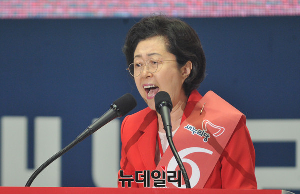 새누리당 이은재 최고위원 후보가 9일 오후 서울 잠실실내체육관에서 열린 당대표 및 최고위원 선출 제4차 전당대회에서 정견발표를 하고 있다.이번 전당대회는 지난 7일 진행된 선거인단 투표와 국민여론 조사결과, 전당대회 현장에서 진행되는 대의원 투표결과를 합산해 새누리당 새지도부(당대표, 최고위원5명)을 선출한다. 투표결과는 오후 7시쯤 나올 예정이다.당대표 후보는 이정현, 이주영, 주호영, 한선교 의원이 최고위원 후보는 이장우, 정용기, 조원진, 정문헌, 함진규, 이은재, 최연혜 의원이 청년최고위원후보는 유창수, 이부형 의원이 각각 이름을 올렸다.