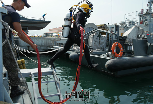 - ▲ 입수 전 SSDS 장비를 착용하고 있다 ⓒ 뉴데일리 정상윤