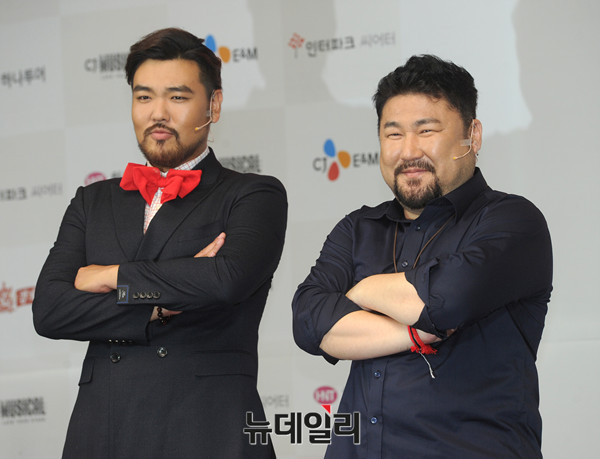 뮤지컬 '킹키부츠'에서 돈 역을 맡은 배우 심재현, 고창석이 16일 오후 서울 강남구 SJ쿤스트할에서 열린 제작발표회에 참석해 포토타임을 갖고있다.