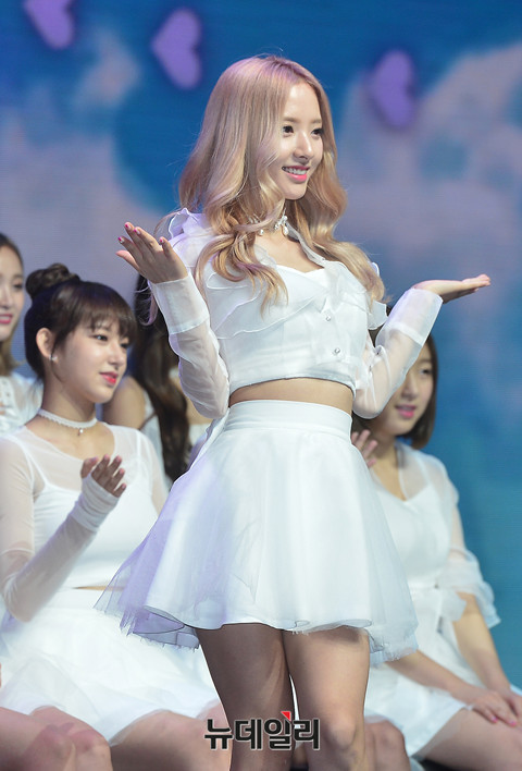 한중합작 13인조 걸그룹 우주소녀(설아, 엑시, 보나, 성소, 은서, 다영, 다원, 수빈, 선의, 여름, 미기, 루다, 연정) 보나가 17일 오후 서울 광진구 예스24 라이브홀에서 두번째 미니앨범 '더 시크릿(The Secret)' 쇼케이스에 참석해 타이틀곡 '비밀이야' 포인트 댄스를 선보이고 있다.