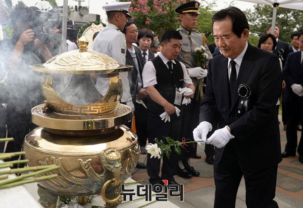 [포토] 故 김대중 전 대통령 묘역 참배하는 정세균 국회의장