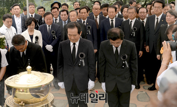 정세균 국회의장이 18일 오전 서울 동작구 국립서울현충원에서 열린 김대중 전 대통령 서거 7주기 추도식에 참석해 묘역을 참배하고 있다.
