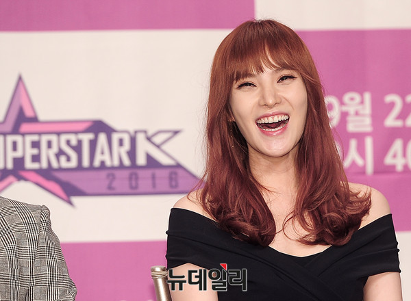 오디션 프로그램 Mnet '슈퍼스타K 2016'의 심사위원 가수 거미가 23일 오전 서울 영등포 타임스퀘에서 열린 제작발표회에 참석해 포즈를 취하고 있다.