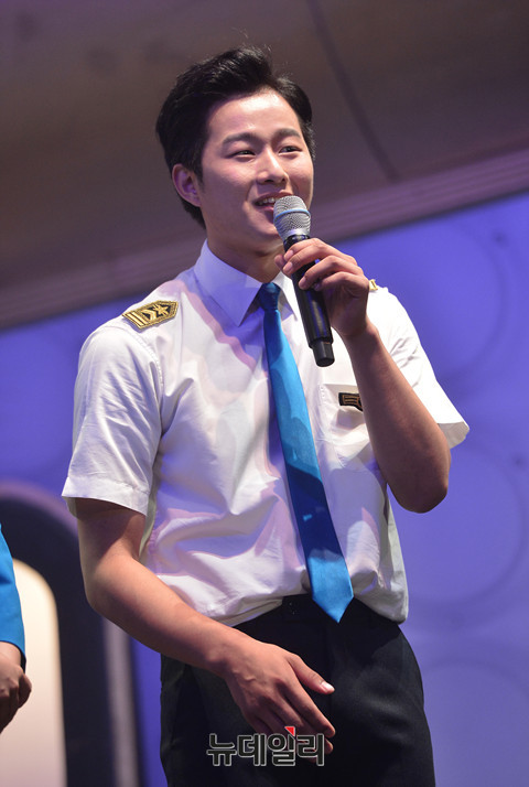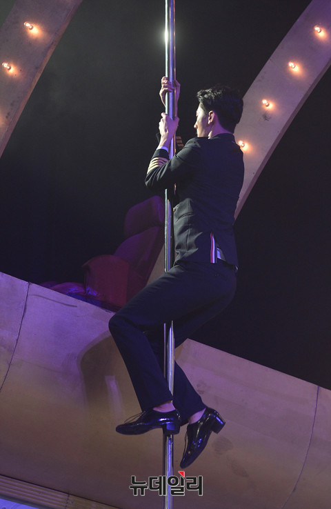 코믹컬 '드립걸즈 시즌5(연출 오미영, 작 오징어)' 의 출연배우 임승태가 26일 오후 서울 강남구 KT&G상상아트홀에서 진행된 프레스콜에서 열연하고 있다.