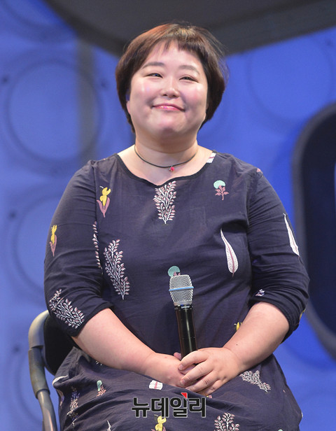 코믹컬 '드립걸즈 시즌5(연출 오미영, 작 오징어)'의 연출을 맡은 오미영 연출가가 26일 오후 서울 강남구 KT&G상상아트홀에서 진행된 프레스콜에서 질문에 답하고 있다.