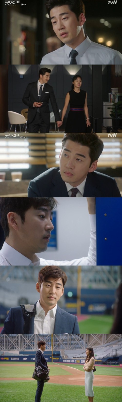 '굿와이프' 윤계상이 변호사 인생 최대 위기를 맞아 전도연과 손잡고 유지태와의 정면승부를 택했다.