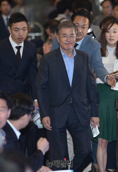 더불어민주당 문재인 전 대표가 27일 오후 1시부터 서울 올림픽체조경기장에서 진행된 '더불어민주당 제2차 정기전국대의원대회'에 입장하고 있다.